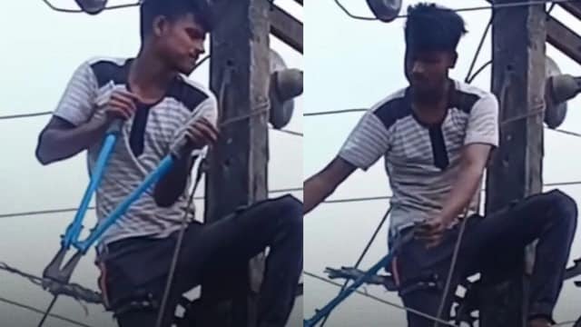 वायरल वीडियो में एक युवक हाथ में बड़ा सा प्लायर लिए दिखाई दे रहा है। वह बिजली के खंभे पर खड़ा है, जिसके चारों ओर कई तार बंधे हुए हैं। वीडियो में वह तार काटते हुए नजर आ रहा है, जिससे पूरे इलाके की बिजली कट जाती है। इस वीडियो को सोशल मीडिया प्लेटफॉर्म इंस्टाग्राम पर tv1indialive नाम की आईडी से शेयर किया गया है। कैप्शन में लिखा है कि गर्लफ्रेंड का फोन बिजी होने पर नाराज प्रेमी ने उसके गांव की बिजली काट दी। अब यह वीडियो सोशल मीडिया पर खूब वायरल हो रहा है। लोग तरह-तरह के मजेदार कमेंट कर रहे हैं। हालांकि, यह पुष्टि नहीं हो पाई है कि यह वायरल वीडियो कहां और कब का है।