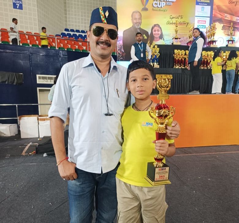 हैदराबाद के बाल योगी स्पोर्ट्स स्टेडियम में 16 – 17 अगस्त को आयोजित 24 वे राष्ट्रीय UC MAS प्रतियोगिता में पूर्व में क्षेत्राधिकारी कार्यालय बाजपुर में तैनात हरीश आर्य के पुत्र रिदम राज आर्या ने देश भर से आए चार हजार विद्यार्थियों में प्रतिभा कर थर्ड रनर अप की ट्रॉफी हासिल कर अपने स्कूल व बाजपुर का नाम रोशन किया है।